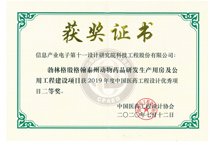 勃林格殷格翰泰州動物藥品研發全國醫藥二等獎