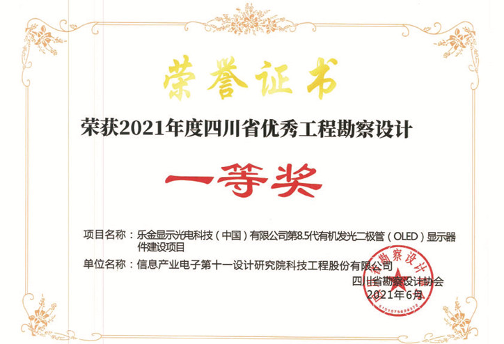 樂金第8.5代有機發光二極管四川省一等獎